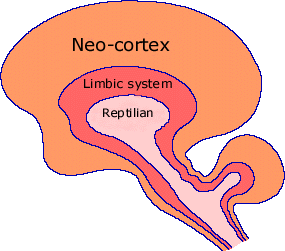 La evolución del cerebro paleomamífero (sistema límbico) fue por tanto visto como algo que libera a los animales de la expresión estereotipada de los instintos dictada por el cerebro reptil. El cerebro neomamífero añadió mayor flexibilidad a la conducta emocional al habilitar a los mamíferos superiores para basar la conducta emocional en procesos interpretativos complejos y utilizar la solución de problemas y la planeación a largo plazo en la expresión de las emociones.